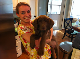 We've mostly been busy with the puppy. Blakely is sleeping through the night (hooray house trained!). She's learned several commands already (sit, come, stay, relax, down, leave it, off). She's definitely a daddy's girl (big time). Tomorrow she will be 14 weeks, and I swear she grows every night. She weighed 24 lbs when she was last at the vet, which was about 3 weeks ago. I'm guessing she is easily 30 lbs now. Afraid to see how big this girl gets full grown! We are taking Miss Blakely Belle this weekend to meet my parents' chocolate lab, Sadie Caroline. I can't wait to see how my dad, the chocolate lab whisperer, is with Blakely. I'm sure he will make puppyhood seem so easy. :)